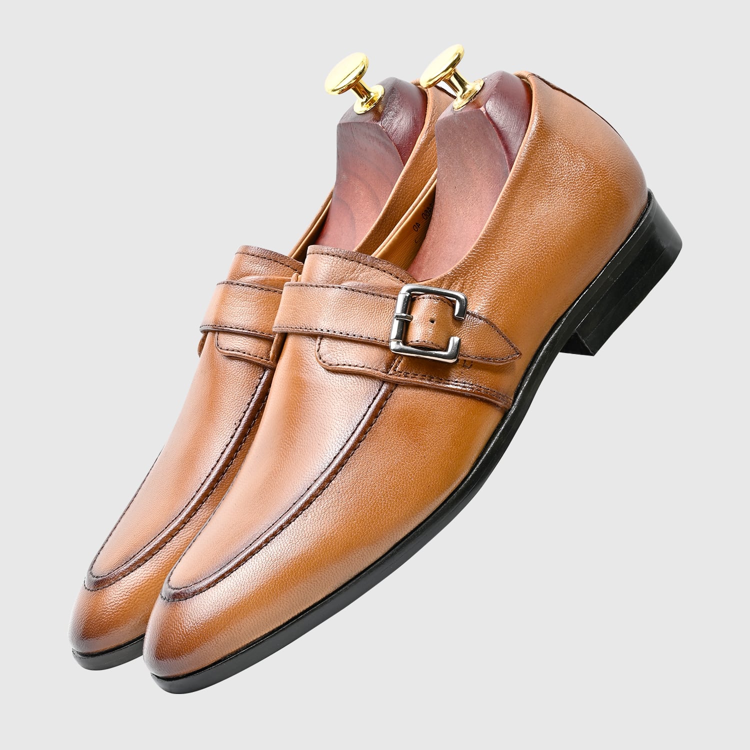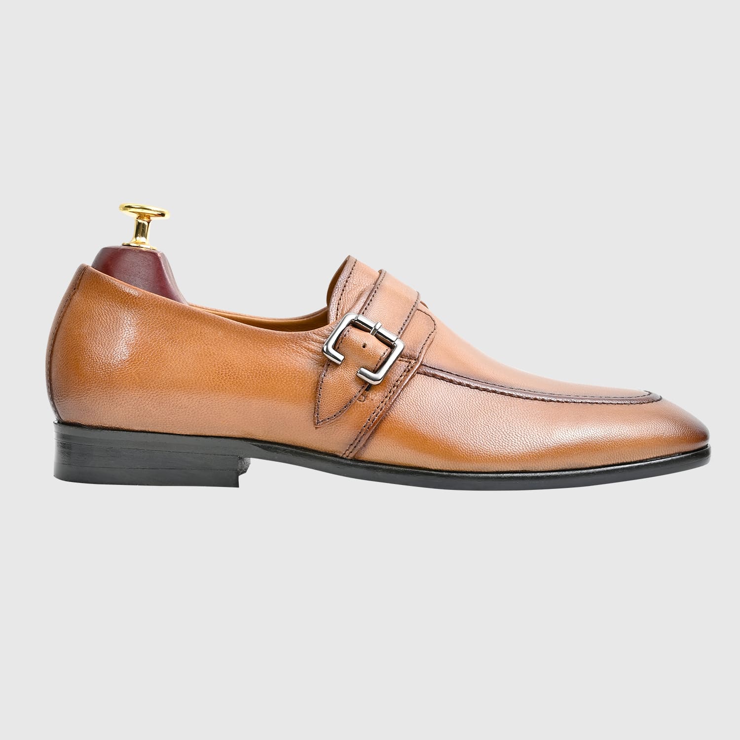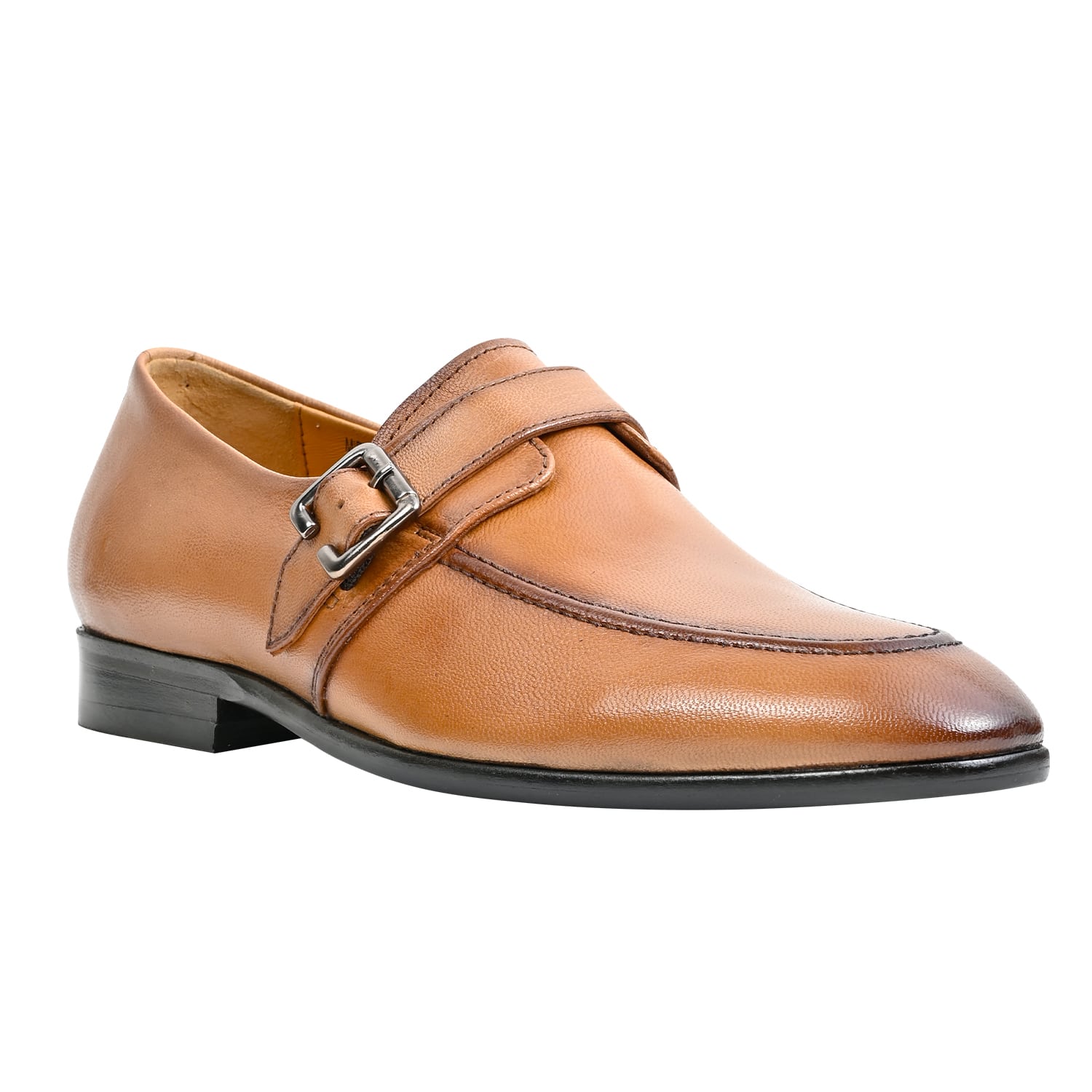 Genuine Leather Brown Slip-On Single Monk Strap Formal Shoes