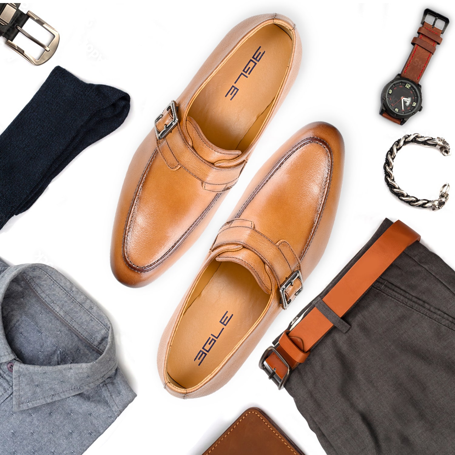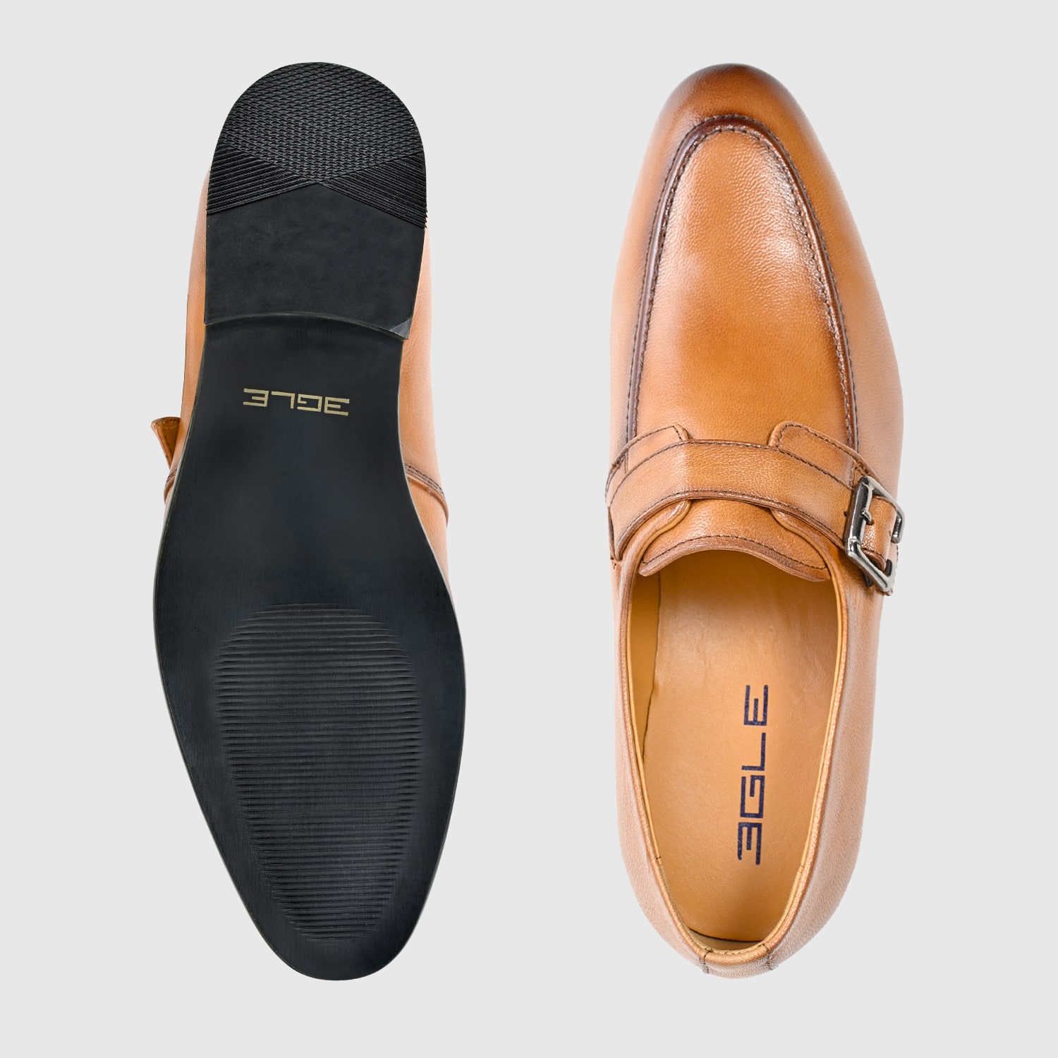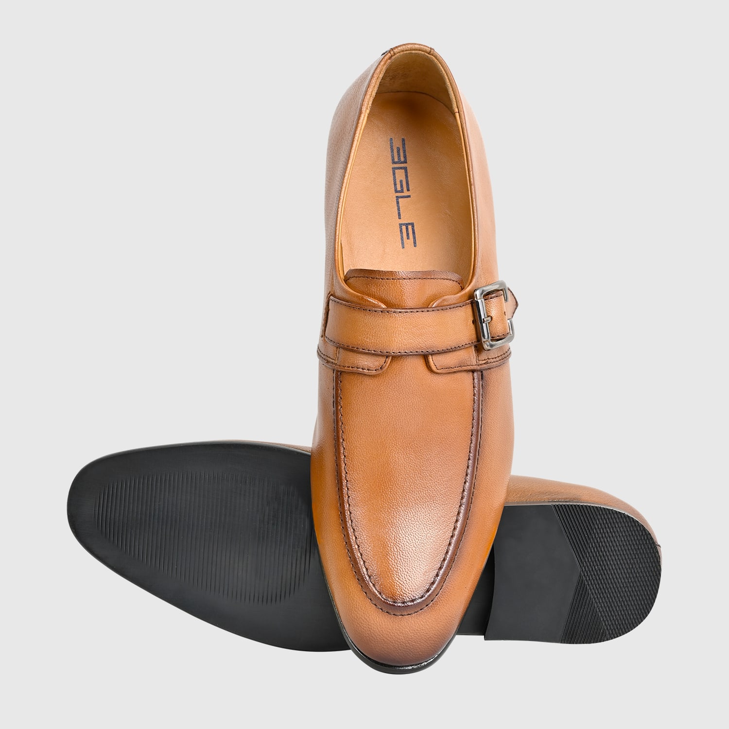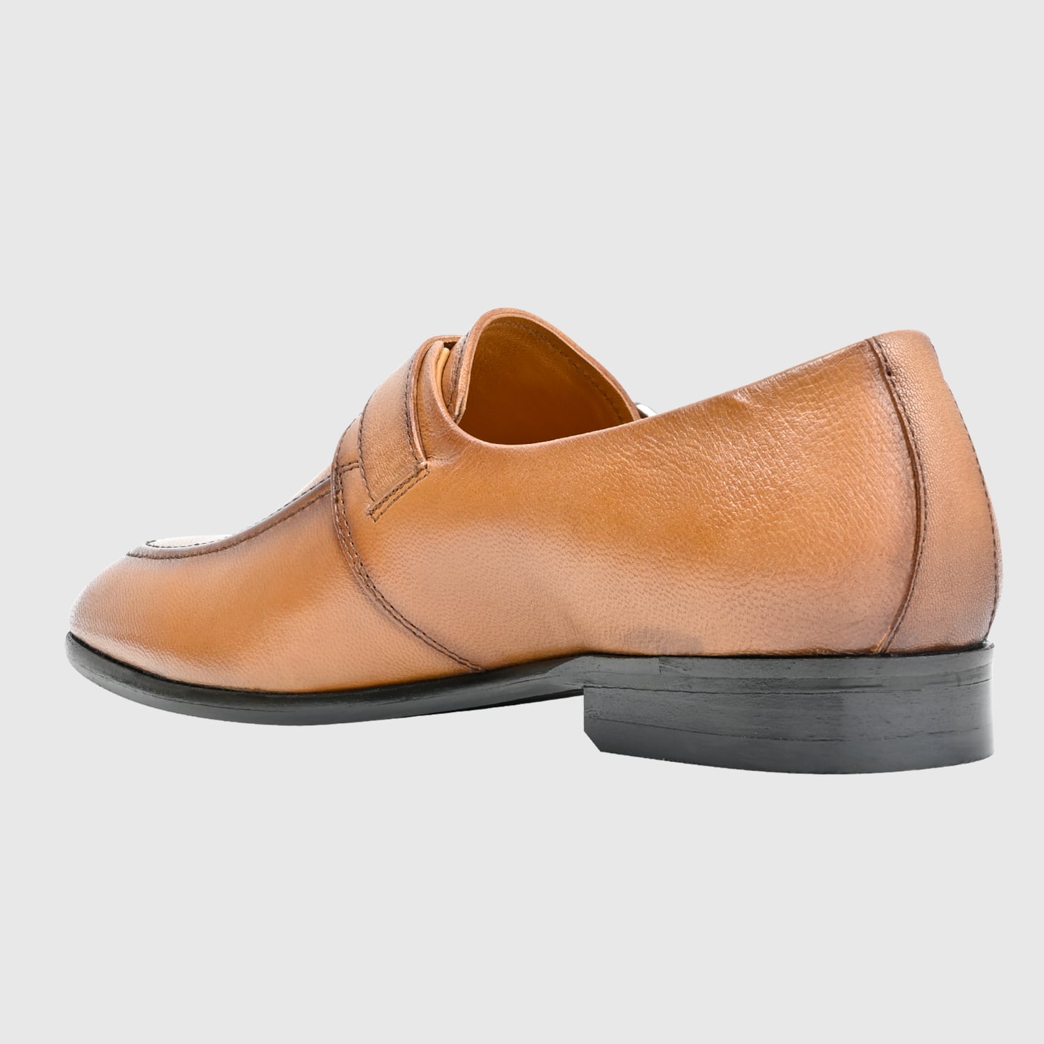 Genuine Leather Brown Slip-On Single Monk Strap Formal Shoes